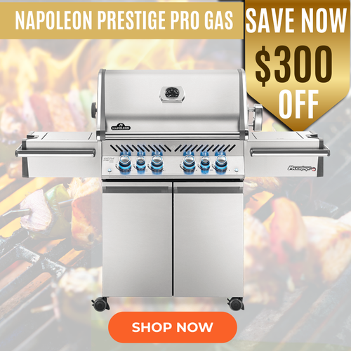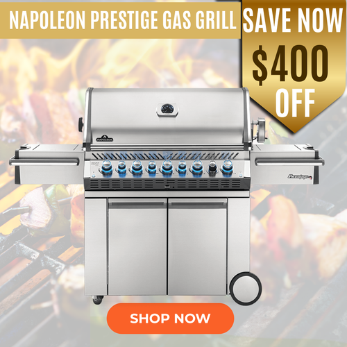 Napoleon Prestige 665 Freestanding Gas Grill with Infrared Rear Burner and Infrared Side Burner and Rotisserie Kit