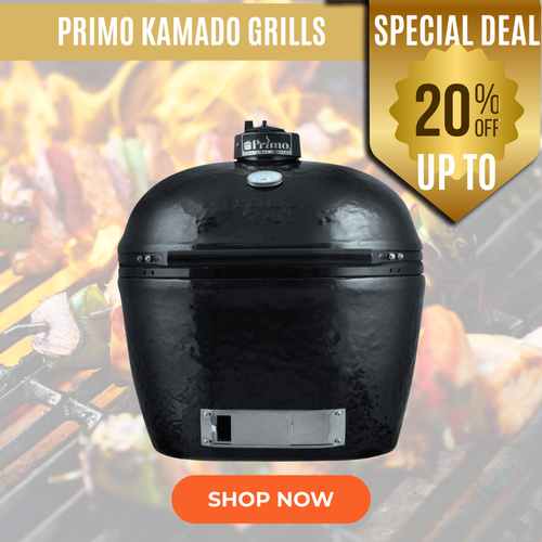 Primo All-In-One Oval XL 400 Ceramic Kamado Grill With Cradle, Side Shelves, And Stainless Steel Grates - PGCXLC