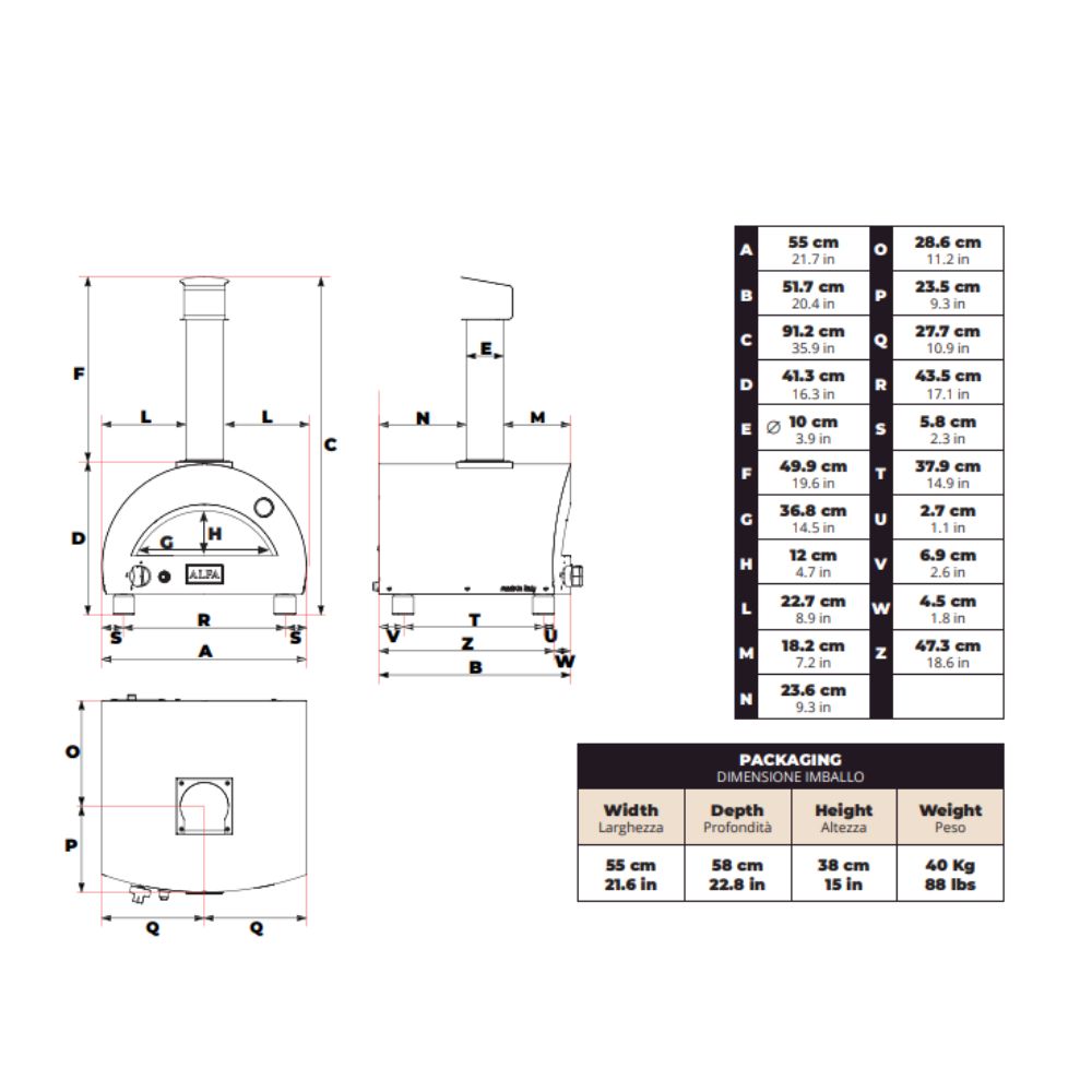 Weighing only 77 lbs (35 kg), this lightweight oven features Alfa’s exclusive Heat Genius™ Technology, ensuring the perfect balance between crispy crusts and evenly cooked toppings while reducing fuel consumption.