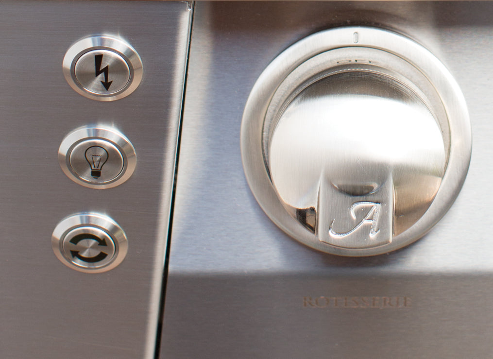 Alfresco brings restaurant-inspired luxury and professional grilling results to your outdoor kitchen with the ALXE grill. This 56-inch cart model gas grill has three (3) titanium and stainless steel blend burners that produce 27,500 BTUs each, for a total of 82,500 BTUs of total cooking power on the grilling surface. Grill also features 27,500 BTU ceramic sear zone burner that reaches 1500 degrees in four minutes and cooks 50 percent faster, sealing in juices with virtually no flare-ups and has a specially designed V-shaped grate that captures juices, fats, and flavors, and caramelize them to your food. The integrated rotisserie system has a 15,000 BTU rear ceramic infrared burner and a whisper-silent motor with a chain-driven spit that has 120 pounds of turning torque. Grill also features a 5,000 BTU smoker system with a stainless steel burner that ejects smoke at 200 degrees onto your grill and a smoker drawer that is large enough to hold peppers, herbs, and wood chunks and is sealed to hold liquids as well. Unique pyramid-shaped ceramic briquettes eliminate hot spots and maximize flavor as they evenly deliver heat to the cooking surface. An air-cooled front control panel keeps your knobs and control panel cool while grilling, protecting both the equipment and your hands from high heat. The 600 degree heat-resistant silicone sleeves protect the electrical wires of the grill. This natural gas grill has a spacious 973 square inches of actual grilling area, double-lined hood for durability, a removable 3-position warming rack, heavy-duty rolled stainless steel cooking grids capable of providing perfect steakhouse results, and a 56-inch grill cart with two access doors and dual storage drawers. ALXE model grills also feature rich amber LED front panel lights, stainless steel push button ignition, lighting and rotisserie controls, a new torsion spring-assisted hood system, and nickel-plated, ergonomically-designed knobs and bezels. This all-American made grill has a grill cover included