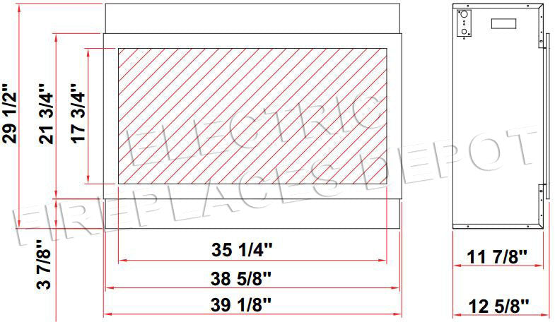 Fireplace: 39 1/8''W x 29 1/2''H x 11 7/8''D