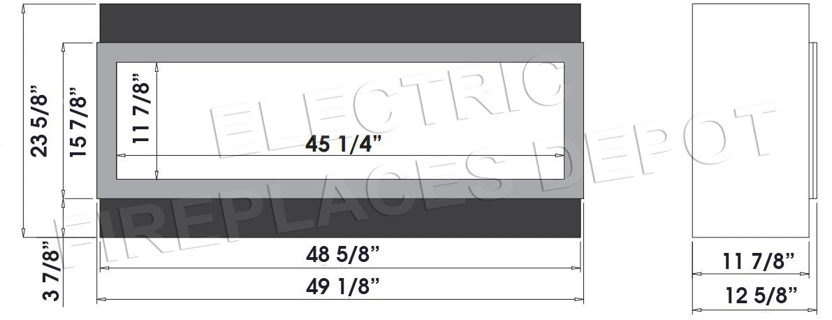 Fireplace: 49 1/8''W x 23 5/8''H x 11 7/8''D