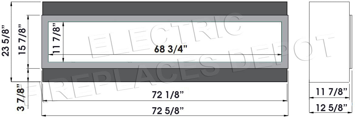 Fireplace: 72 5/8''W x 23 5/8''H x 11 7/8''D