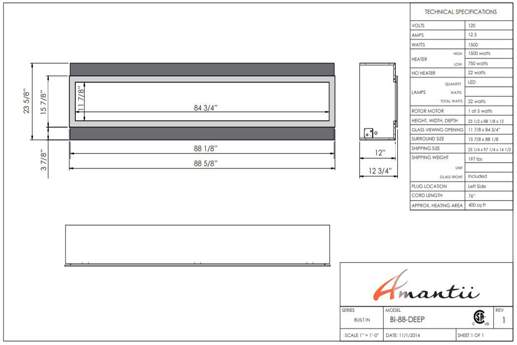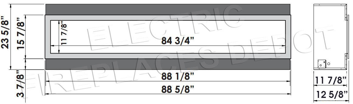 Fireplace: 88 5/8''W x 23 5/8''H x 11 7/8''D