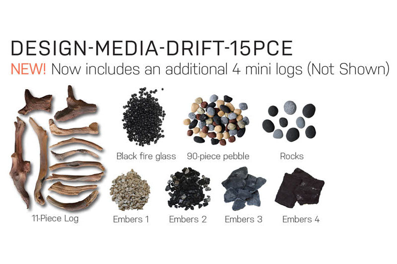 • Choice of  Deluxe Driftwood, Deluxe Birch, Deluxe Rustic Log media kits or Diamond Ice media kit