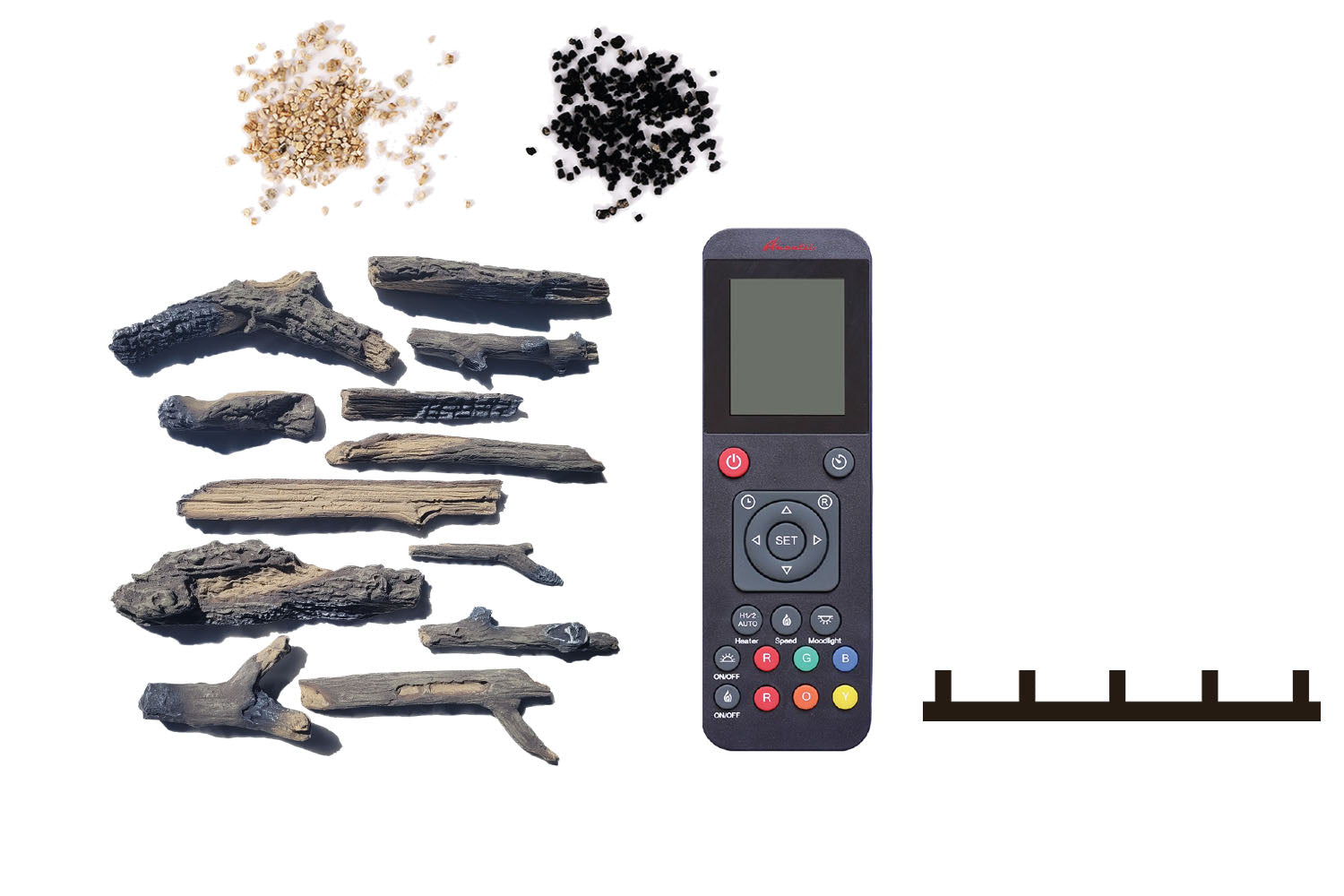 • Touchscreen controls, Remote and WiFi App to completely operate the fireplace