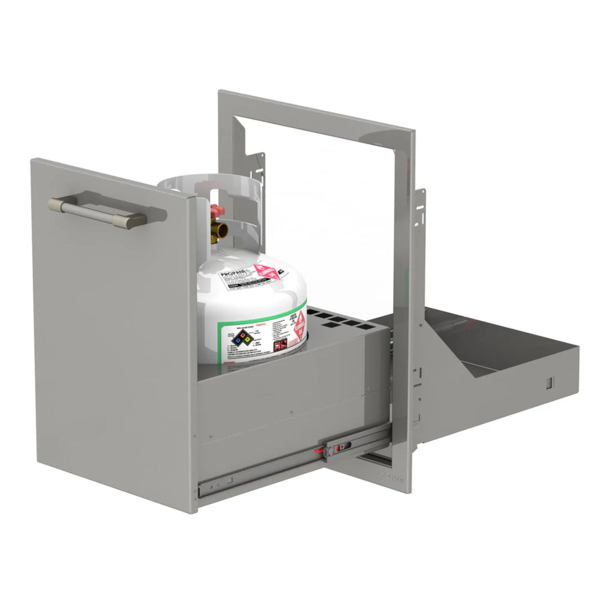Keep your outdoor kitchen organized and your propane tank easily accessible with the Artisan 18-Inch Island LP Tank Drawer. Built to integrate seamlessly with Artisan Series products, this durable drawer offers a convenient and secure solution for storing and replacing your LP tank—while maintaining a clean, polished look for your island setup.