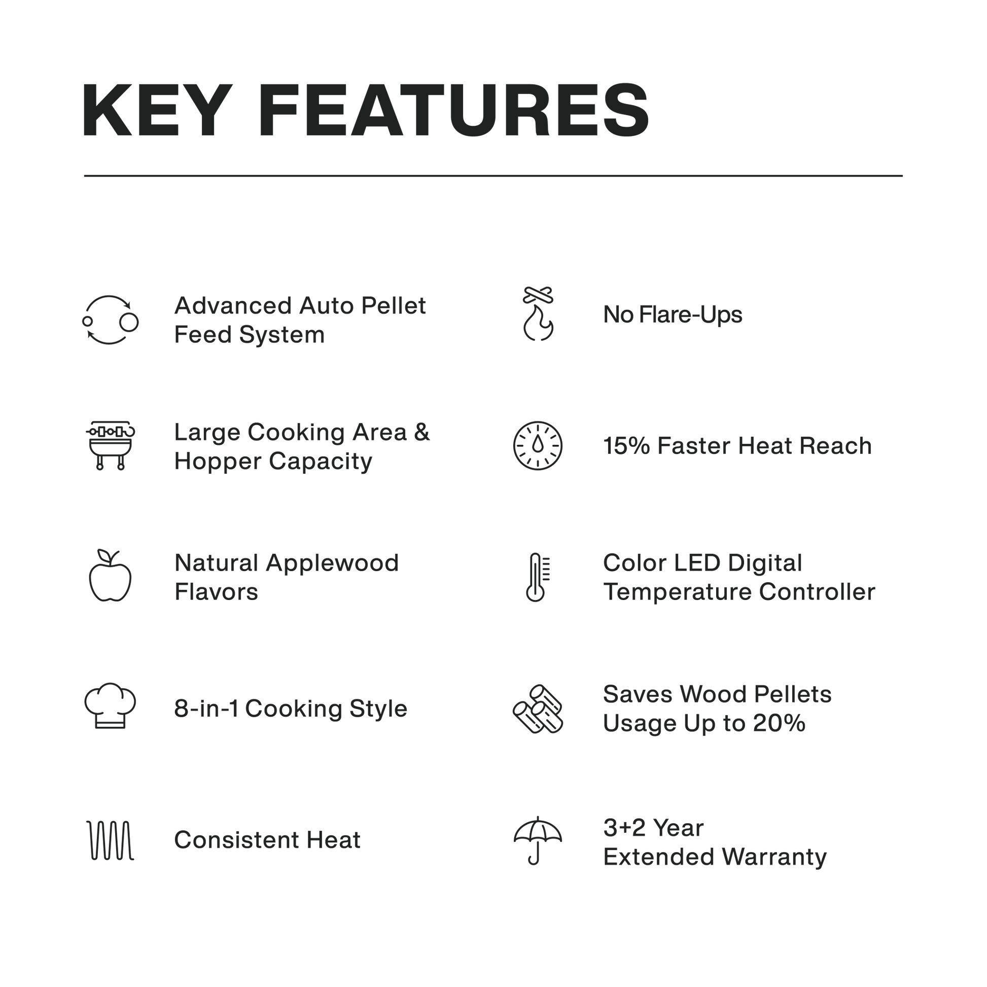 • 8-in-1 Cooking Versatility: Grill, bake, roast, smoke, sear, braise, barbeque, or char-grill effortlessly.