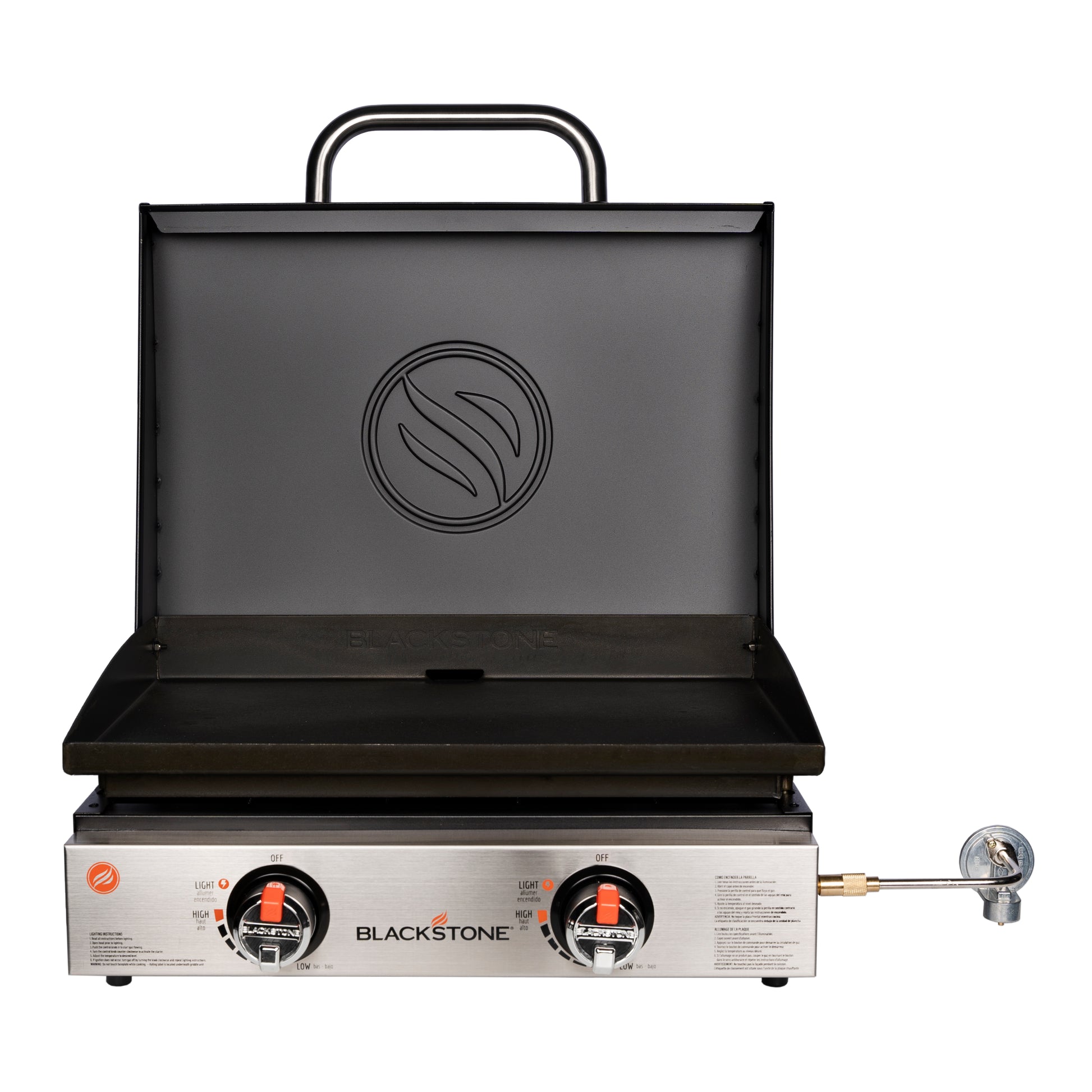 The Blackstone 22” Tabletop Outdoor Griddle is here to improve how you cook outside. Whether it’s to the tailgate, campsite, or park, this portable griddle is perfect for on the go. It quickly heats up with a total of 24,000 BTUs through two “H” style burners that provide even heat distribution for optimal cooking across the whole griddle. While the Rear Grease Management System allows you to clean up quickly, the hood helps to keep it clean till you are ready to cook again. This griddle will help you cook outdoors without the compromise! The Blackstone 22" Tabletop Gas Griddle Stainless will add style and cooking excellence to elevate your outdoor lifestyle. Command your backyard while entertaining your family and friends with a fresh cooked meal.