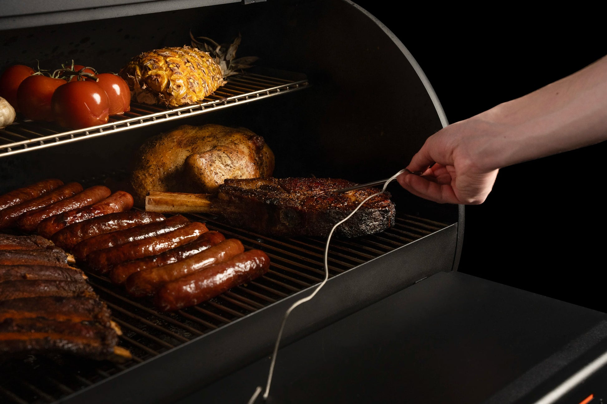• Stowable top shelf inside the barrel allows you to modify the cooking space based on your needs
