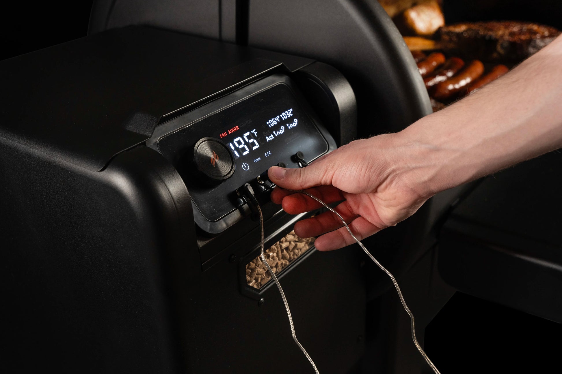 Infuse flavor into every meal with the Blackstone Pellet Grill 900. This top-tier Blackstone Pellet Grill is equipped with Wi-Fi and Bluetooth connectivity, along with a touchscreen LED control panel, allowing you to regulate even your longest cooks with precision. With 884 sq. in. of cooking space, a stowable top shelf within the barrel, and a sturdy folding front shelf, this grill is designed for peak performance. The 20 lb. hopper features an easy-to-see fill window, keeping the pellet grill fueled and ready to go. Embark on new culinary adventures with Blackstone’s newest addition: the 900 Pellet Grill.