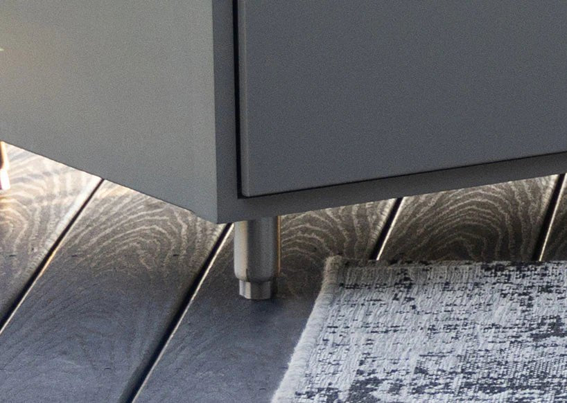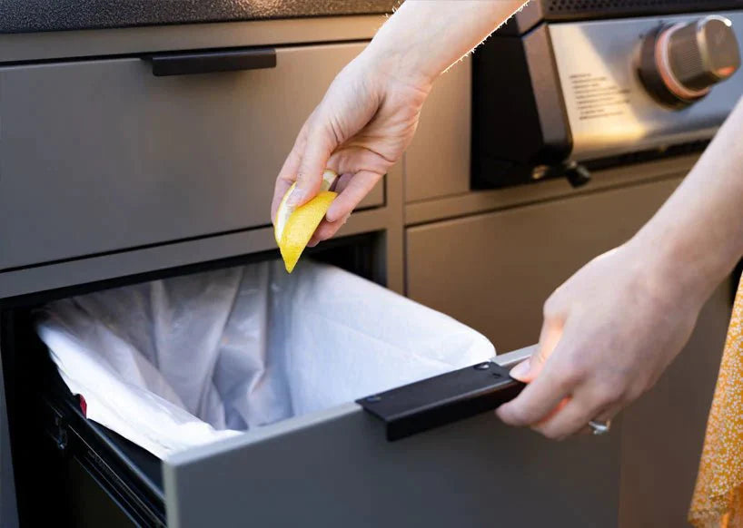 • Ample of weather-sealed storage including, two soft close drawers, a pull-out trash bin, and cabinet
