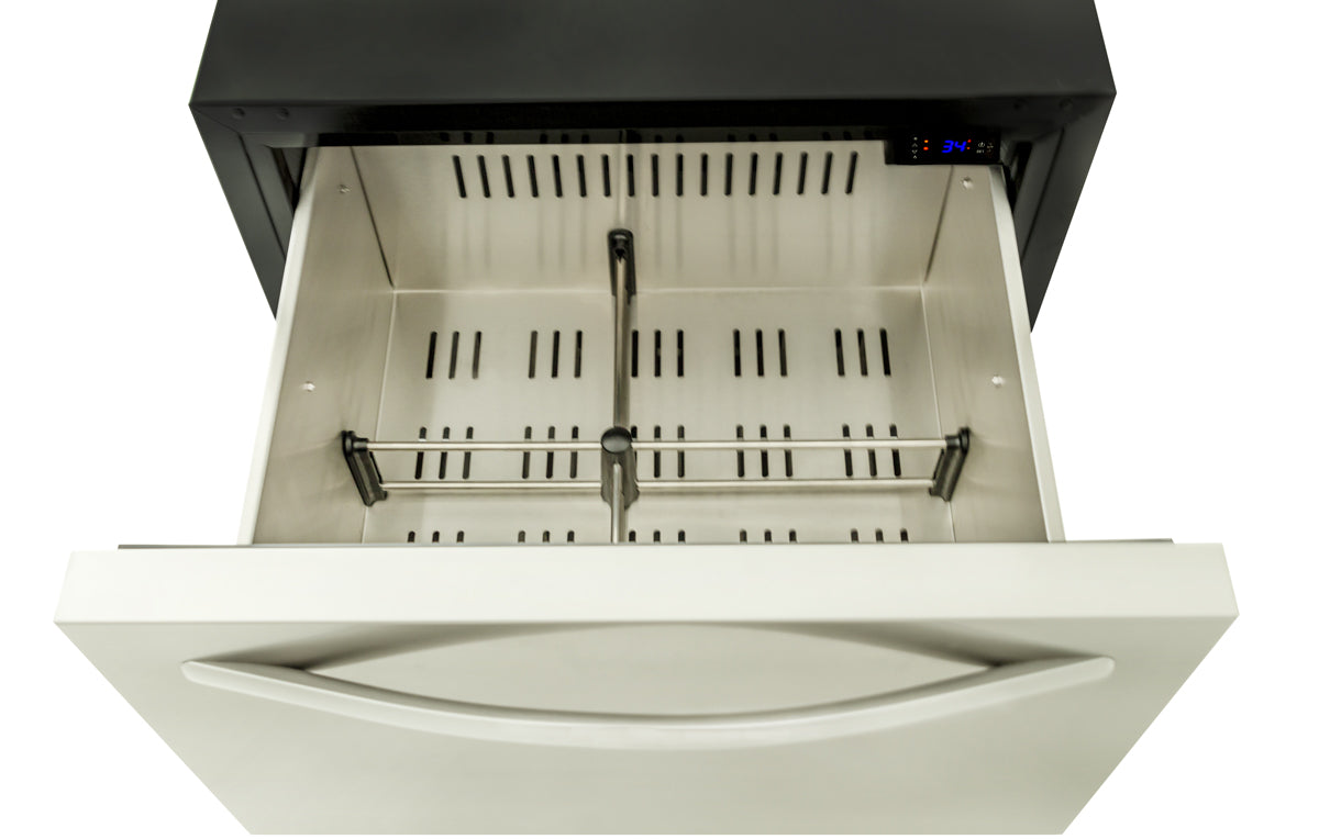 The Blaze 5.1 Outdoor Rated Double Drawer Refrigerator is the ideal space saving solution for outdoor kitchens built into your island. With 5.1 cubic feet of space, this refrigerator has ample room and can hold up to 154 cans! The double drawers include adjustable and removable drawer dividers, letting you customize the interior. This refrigerator also includes high-quality soft-close drawers! The 304 Stainless Steel design pairs well with all of your other outdoor kitchen products, and includes a digital thermostat and temperature display. The Blaze Double Drawer Refrigerator also includes interior LED lighting for entertaining at night.
