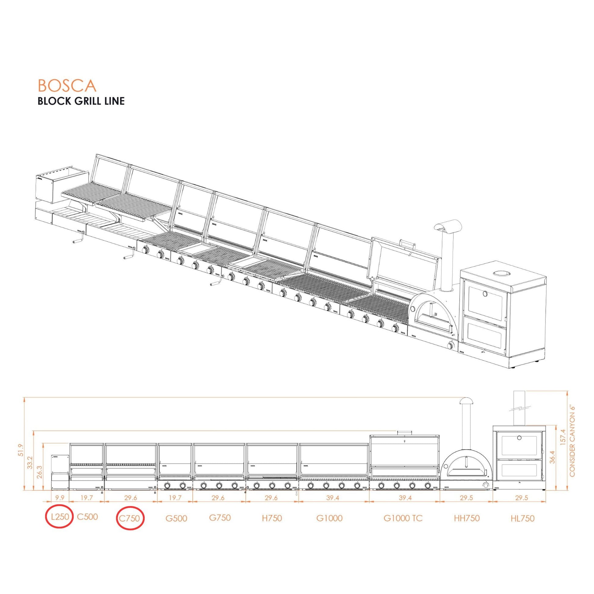 Bosca Pack Block Wood Brazier 250 + Block 750 30" Built-in Grill