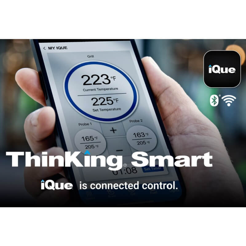 Effortless Precision Cooking with iQue™ – iQue™ technology automatically monitors, adjusts, and maintains the perfect temperature for grilling, smoking, rotisserie, and roasting with no guesswork.