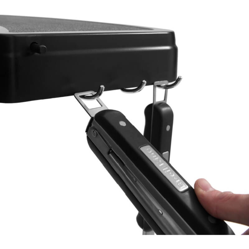 • Removable side shelves with accessory hooks for an expanded cooking space and your grilling tools within arm's reach.