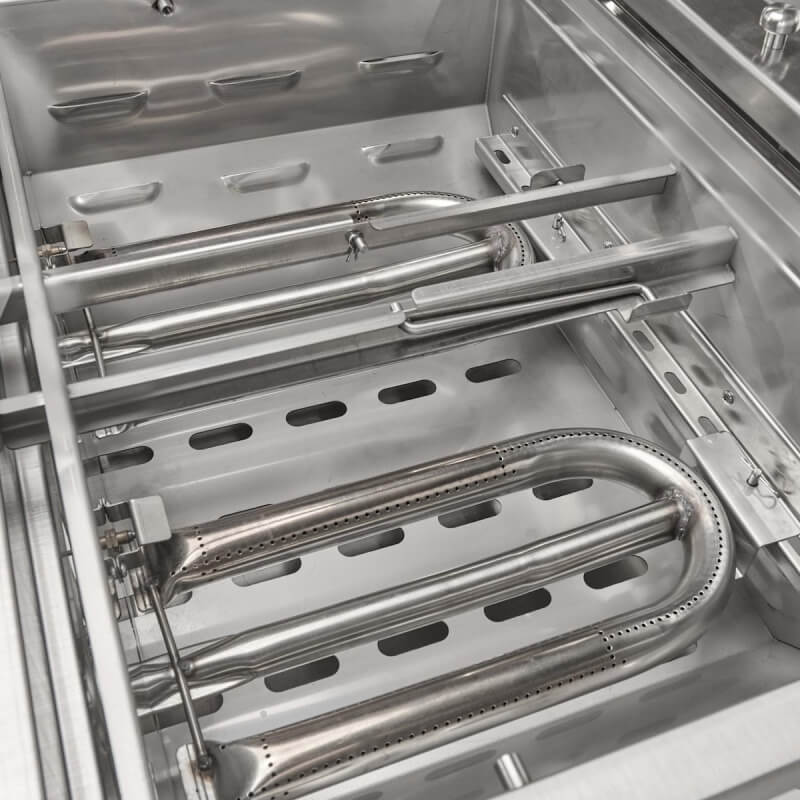 The entire grill is constructed with 18-gauge 304 stainless steel, this grill is built to withstand the elements, offering exceptional durability and a polished, professional look for any outdoor kitchen. Made from a continuously welded grill box, this grill brings extreme durability and strength to years of grilling versatility memories.
