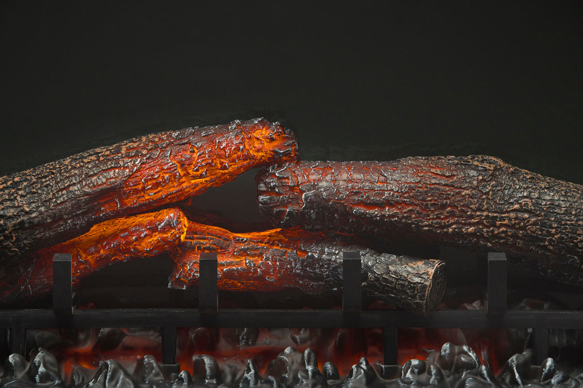 • Select red highlights to customize the flame or enjoy glowing logs and embers without the flames