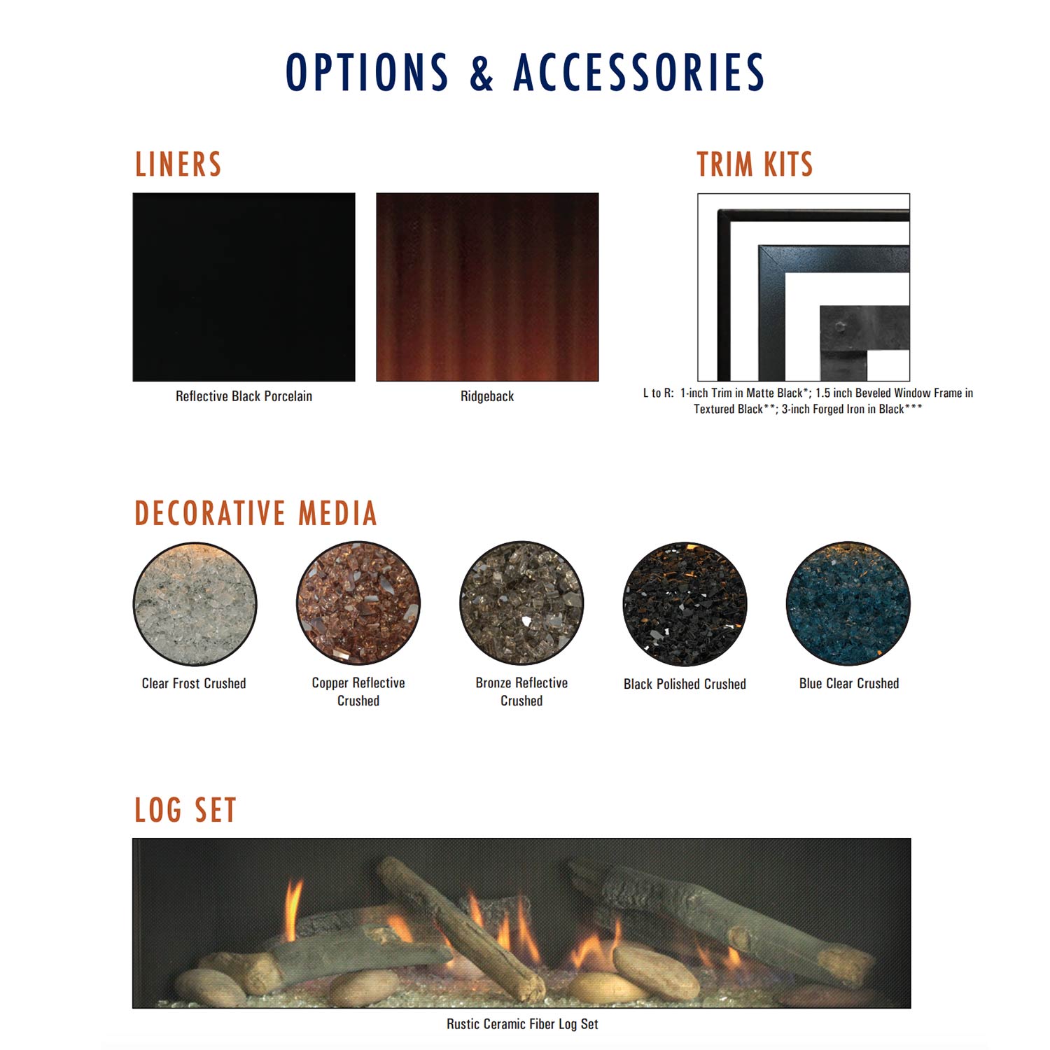 The White Mountain Hearth DVLL36BP92 Boulevard 36-Inch Direct Vent Linear Gas Fireplace with Matte Black Liner, Crushed Glass, Multi-Function Remote provides a premium fireplace option for your favorite living space. With its contemporary design, this unit makes an excellent addition to modern homes, while its full-featured design offers a wealth of convenient options. The Boulevard fireplace features a fully-recessed burner to fill the fireplace with a vibrant flame presentation, while the included electronic intermittent ignition system eliminates the need for a standing pilot to save energy and money. The system includes a battery back-up located in a wall box for manual or remote operation, while the multi-function remote allows you to switch to a standing pilot mode, which is recommended in colder climate conditions.