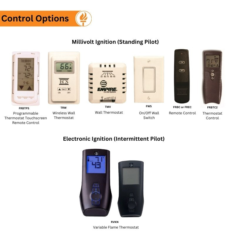 A remote control does not come standard with the Empire Innsbrook. Choose from the following control options:
