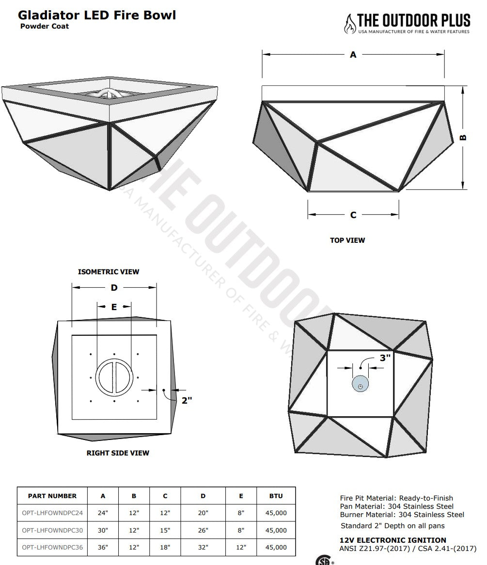 Gladiator Led Fire Bowl Metal Powder Coat by The Outdoor Plus