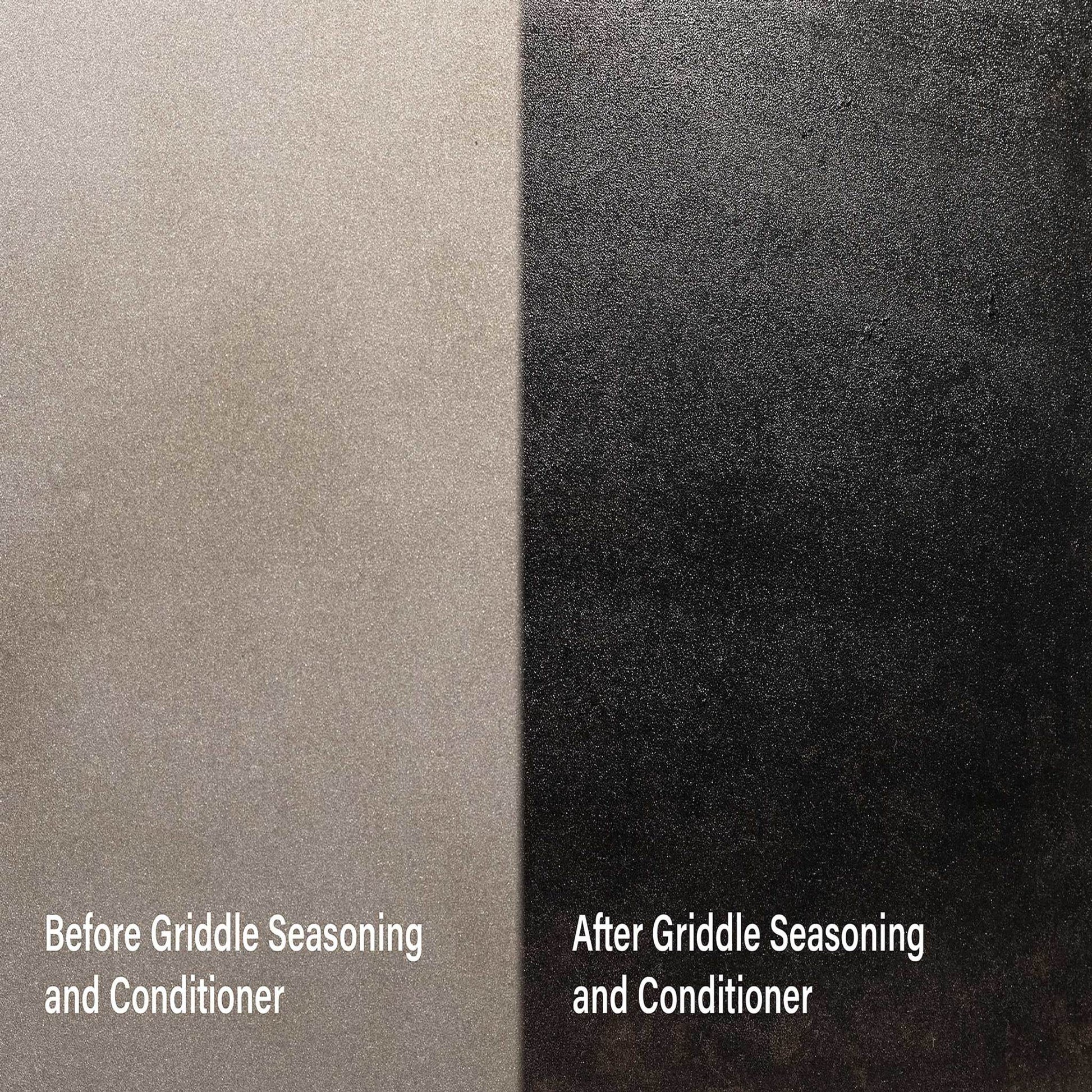 The Blackstone Griddle Seasoning and Cast Iron Conditioner is exactly what you need to make sure your griddle and cast iron are well-seasoned and protected. This two-in-one product offers results you can trust to get your griddle ready for use, or help maintain your current seasoning to prevent sticking and rust. Made of a proprietary blend of palm oil, shortening, beeswax, palm oil, canola oil, and soy oil, this conditioner was specifically engineered for all of a Blackstone griddle’s needs.