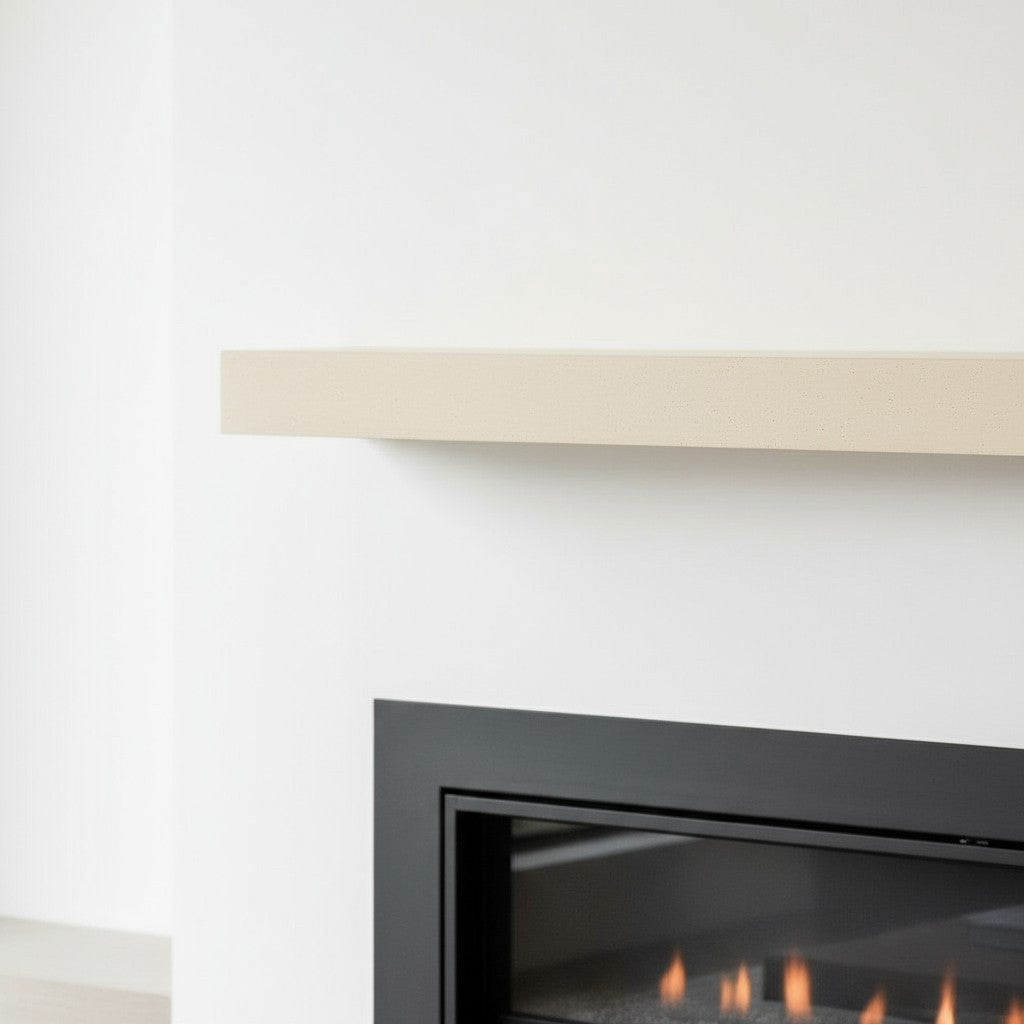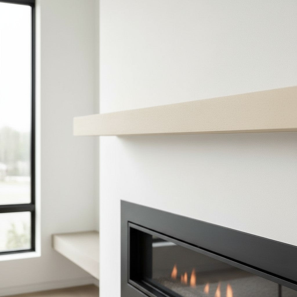 This elegantly simple mantel shelf offers a slim 3” profile with a 4” or 6” projection, and is available in five-foot or seven-foot lengths. The standard colors of Mystic Grey and Sahara Sand, give this fireplace mantel a subdued palette, which naturally pairs with most other colors.