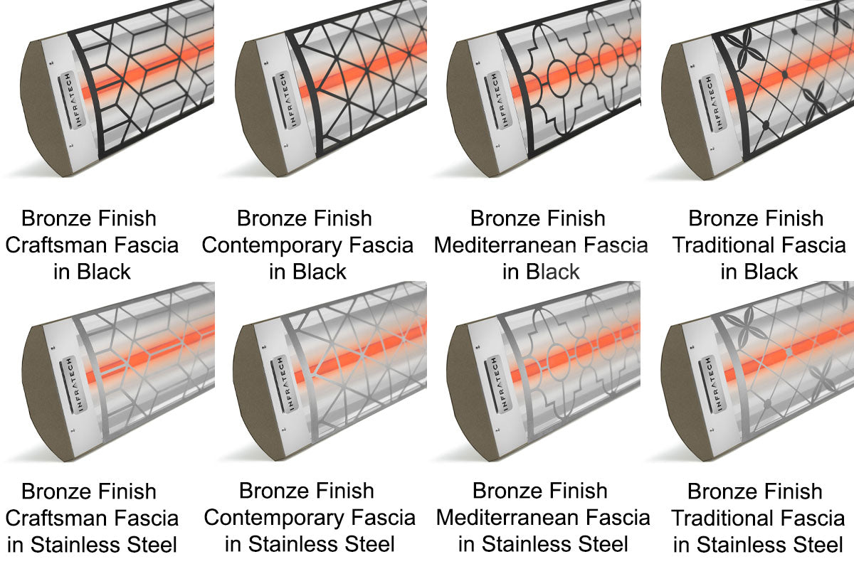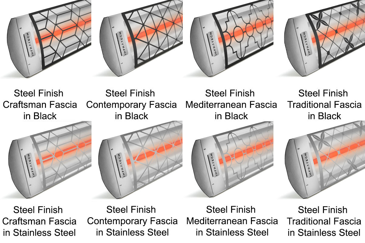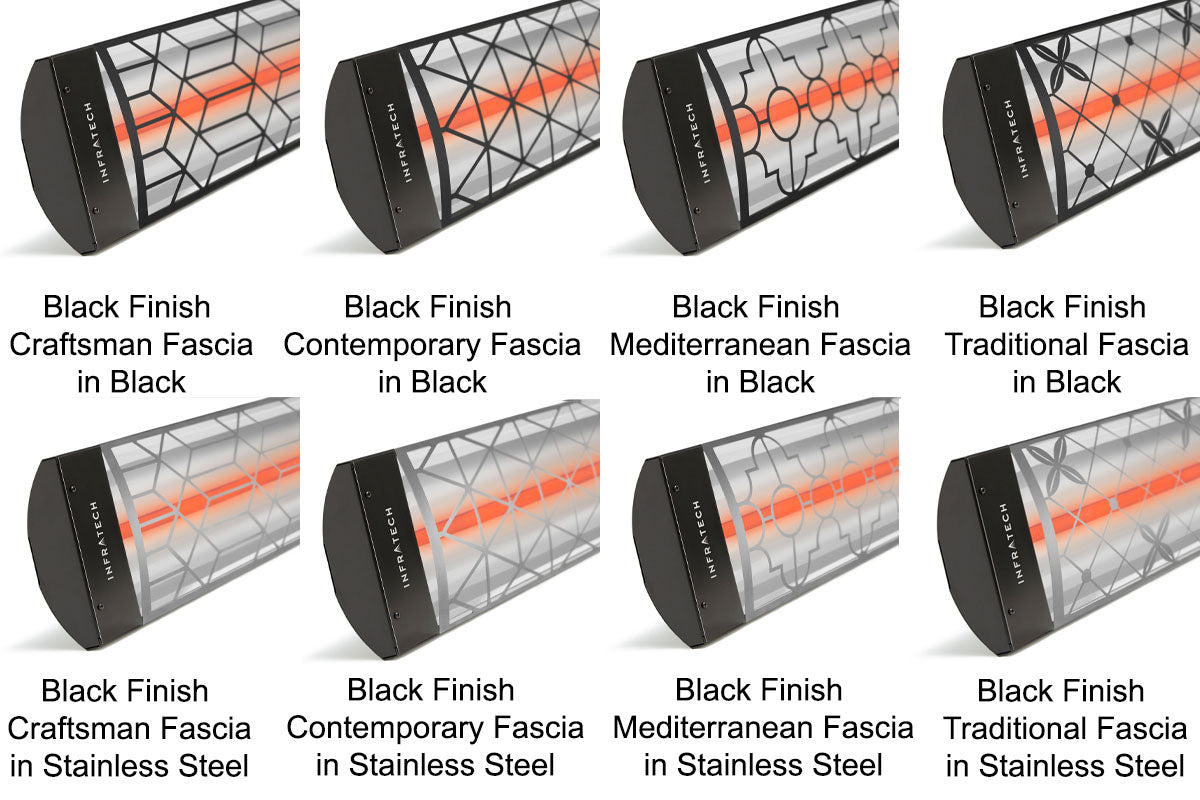 Custom Look. Choose the color of your Infratech CD-Series from brushed stainless steel, standard colors, or custom color finish options. Upgrade your unit with the Motif collection of decorative, laser-cut metal fascias.