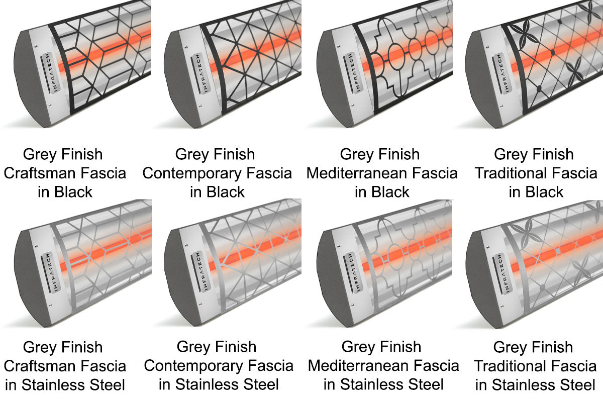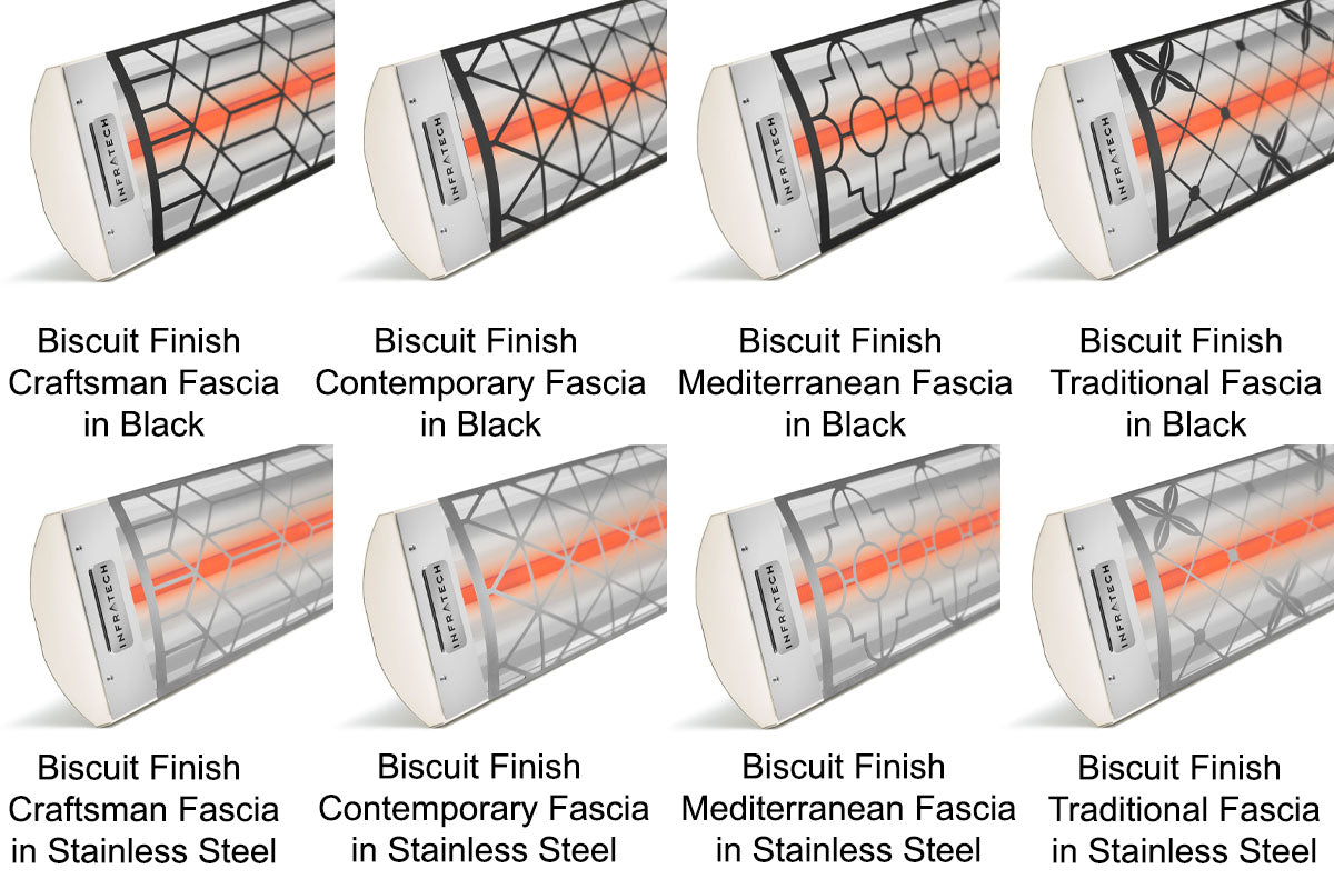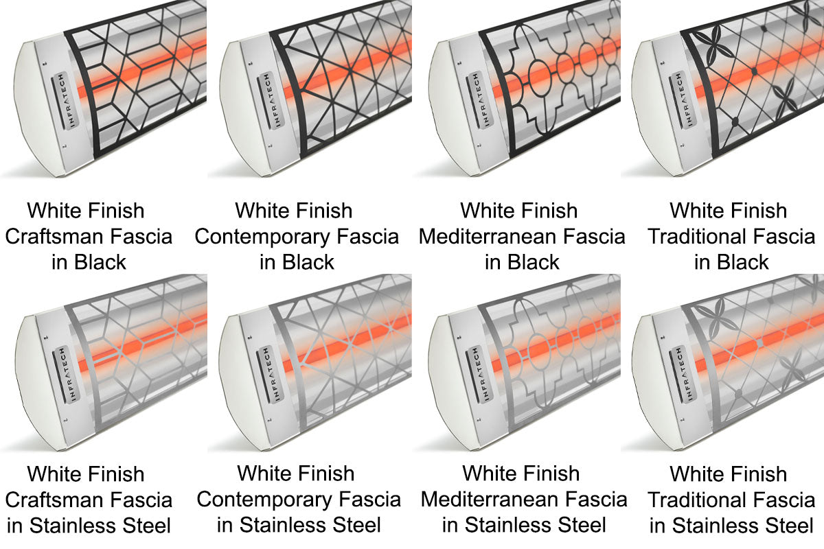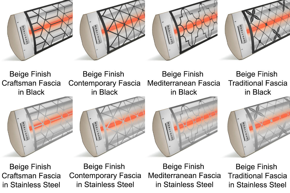 Custom Look. Choose the color of your Infratech CD-Series from brushed stainless steel, standard colors, or custom color finish options. Upgrade your unit with the Motif collection of decorative, laser-cut metal fascias.