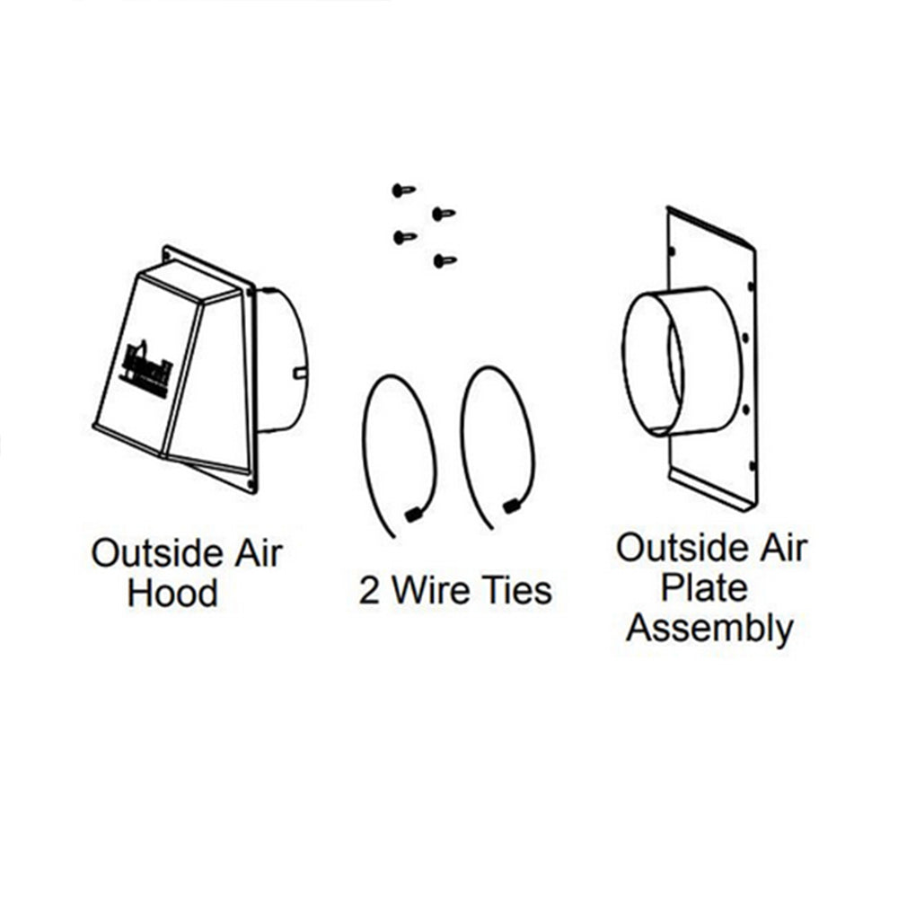 • Includes - Includes an outside air plate, wire ties, fastener pack, and an outside air hood