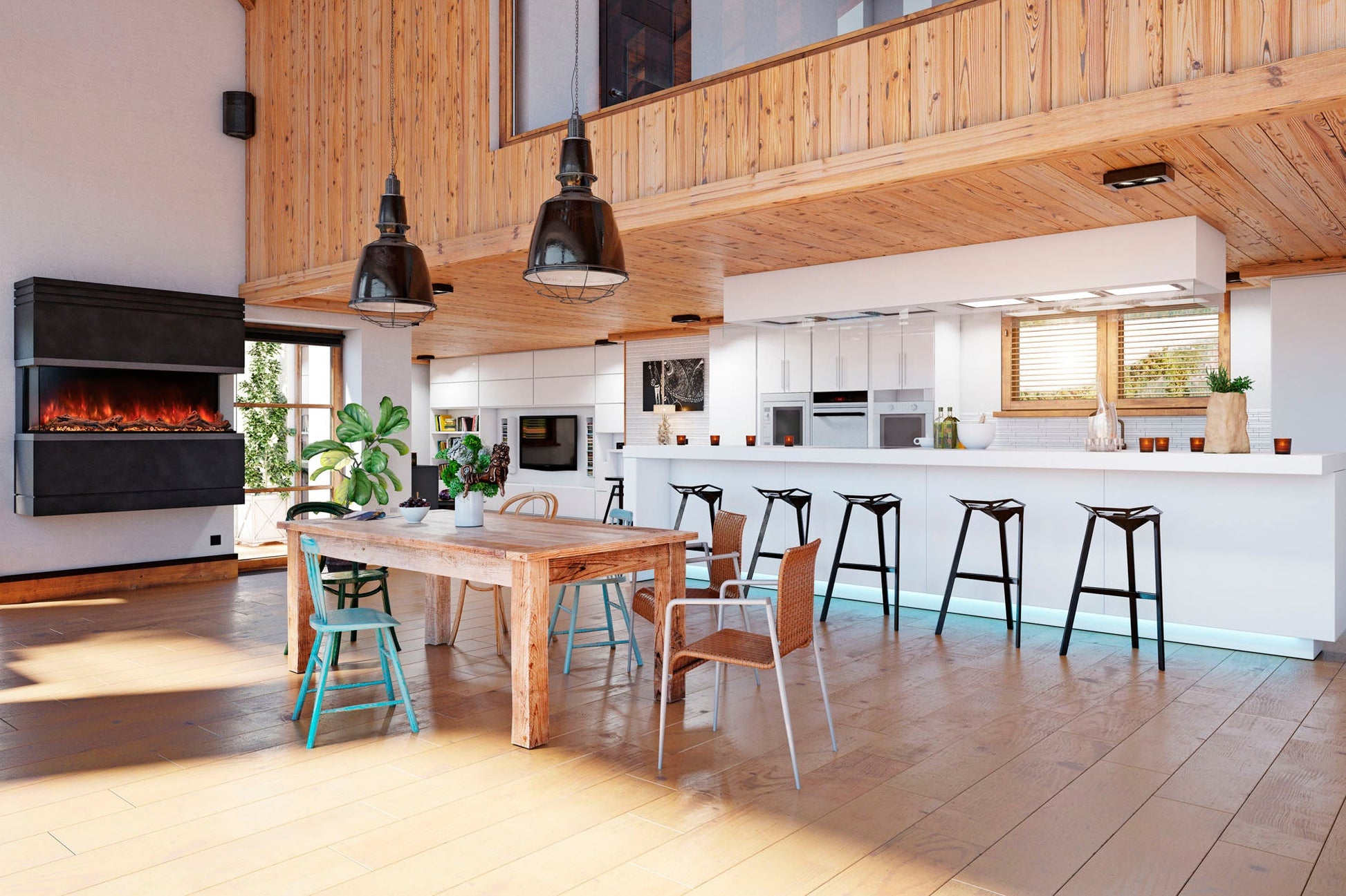The fireplace comes with a multi-function RGB remote control, or you can control it through your phone with the Modern Flames app. Set the off timer, adjust the temperature using the wireless thermostat control, and easily integrate the unit with your Smart Home system, allowing you to control it with Alexa or Google.