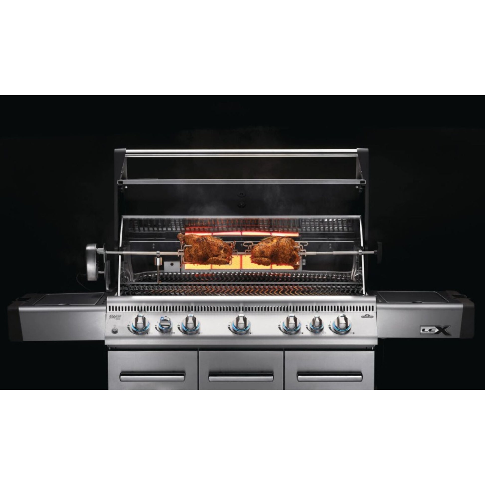 Rotisserie grilled meals are the best. They are succulent and juicy and a real crowd pleaser. Use the Napoleon Commercial Grade Rotisserie Kit for Extra Large Grills to produce restaurant quality meals right in your own back yard. The large commercial grade stainless steel hexagonal spit rod with commercial motor (holds up to 55 lbs of food) are up for any task you throw at them. The stainless steel four prong meat forks hold your food in place with easy to use thumb screws. And there is even a counterweight assembly, just in case you're cooking for an army.