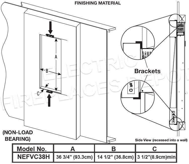 Fireplace: 16''W x 38''H x 5 5/8''D