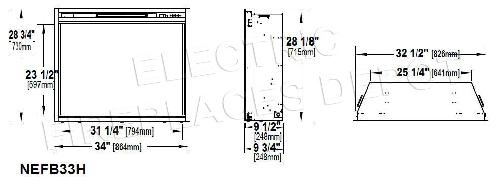 Fireplace: 34''W x 28 3/4''H x 9 1/2''D