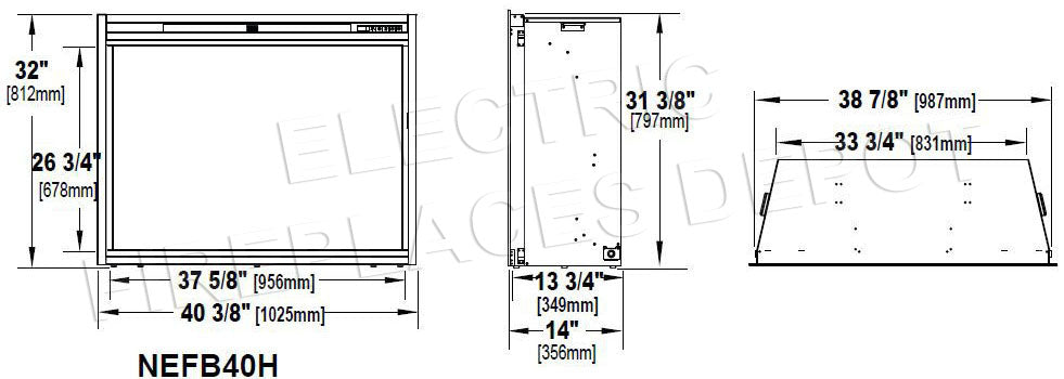 Fireplace: 40 3/8''W x 32''H x 13 3/4''D