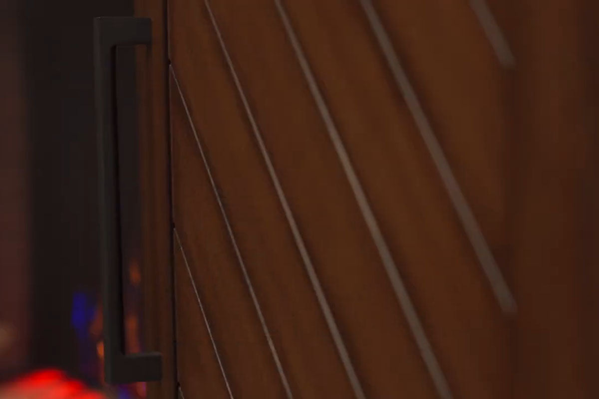 • Soft closing angled panel doors
