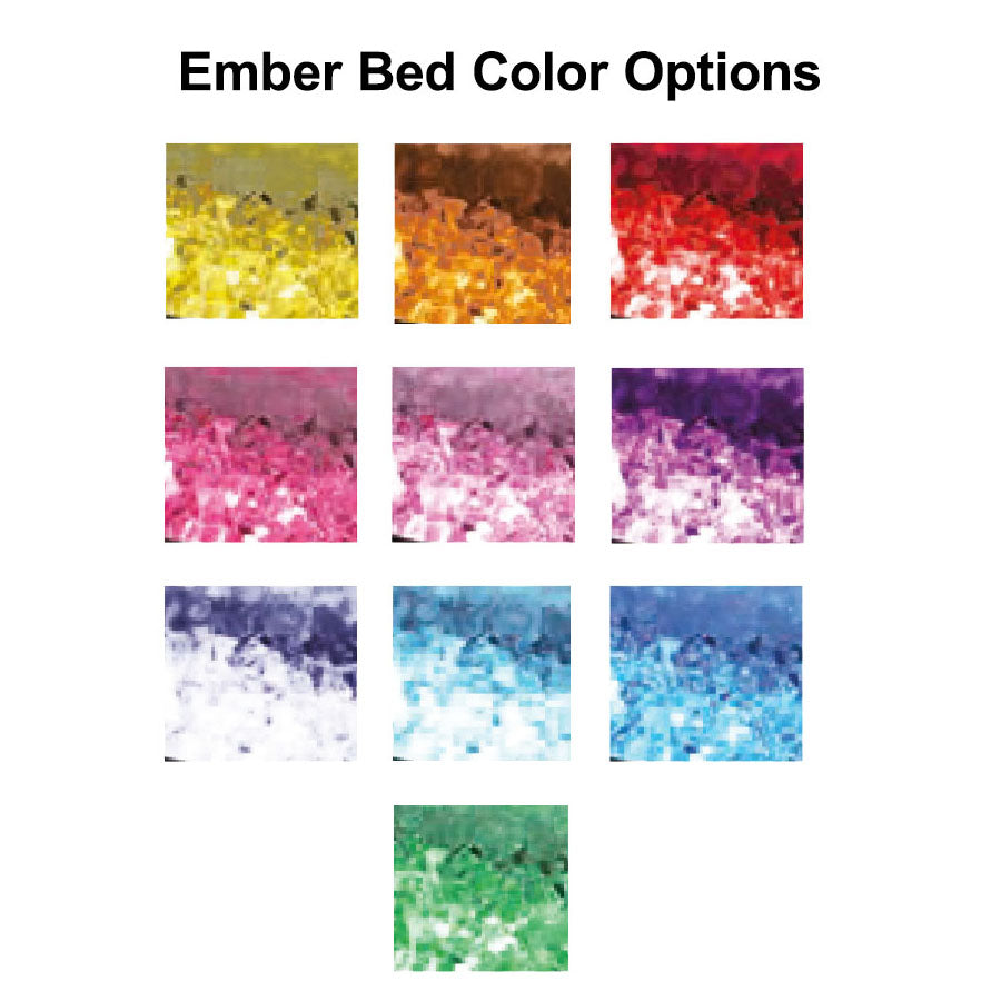 • Ten different ember bed color options; Orange, Red, Blue, Yellow, Green, Purple, Sky Blue, Magenta, White & Pink