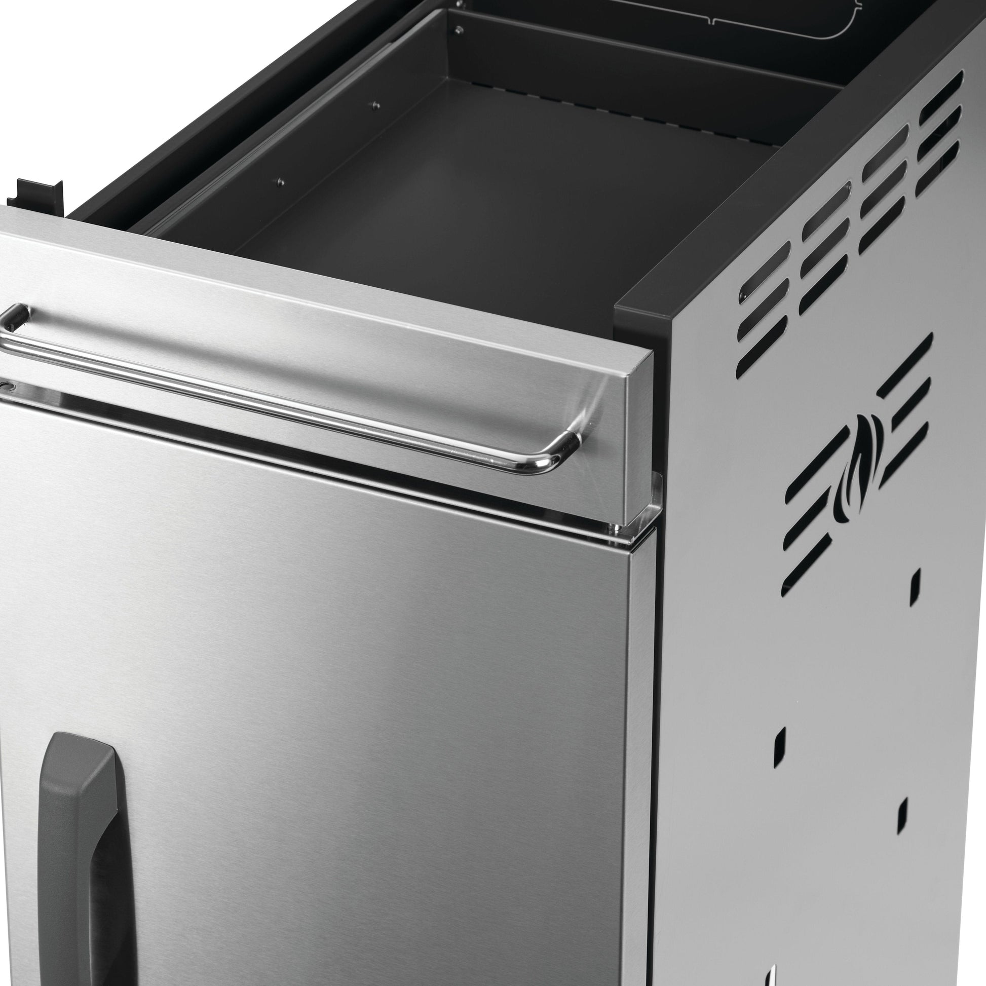 Bring smart storage and sleek style to your grilling setup with the Rogue® PRO Under Grill Storage Cart. These premium, free-floating cabinets are built to integrate seamlessly with your Rogue® PRO grill. Locking caster wheels ensure the cart moves smoothly and securely as one unit with your grill. The drawer offers quick access to your go-to tools, while the drawer handle cleverly doubles as a towel rack, keeping essentials close at hand. Inside, a storage divider and built-in tool hooks provide optimized organization, helping you maintain a tidy and efficient grilling space. Designed for convenience and versatility, these carts are convertible for left or right installation, allowing for a tailored fit in your outdoor kitchen. Whether you're prepping ingredients or finishing the final sear, the Rogue® Under Grill Storage Cart keeps everything in place so you can focus on the perfect cook.