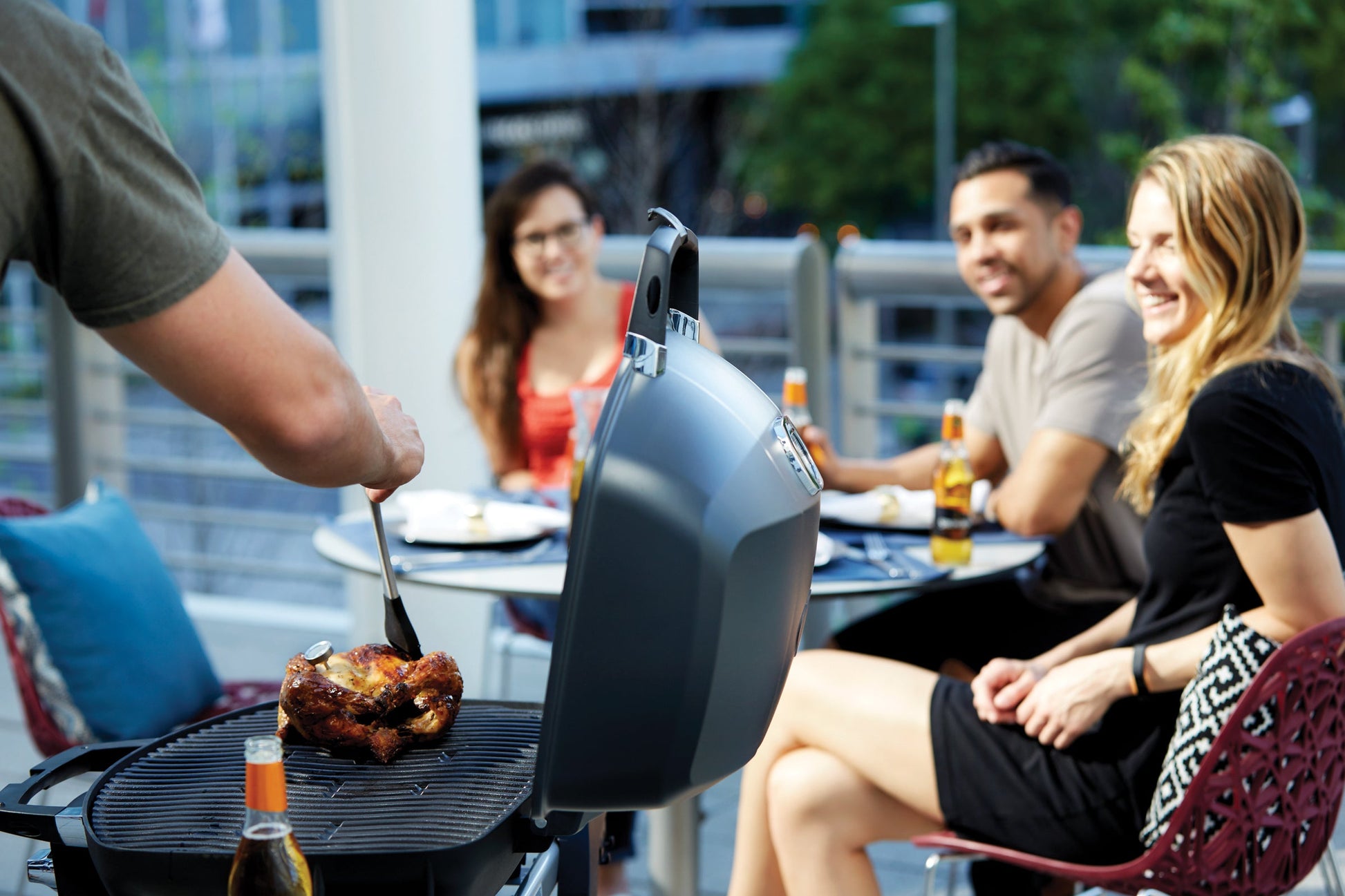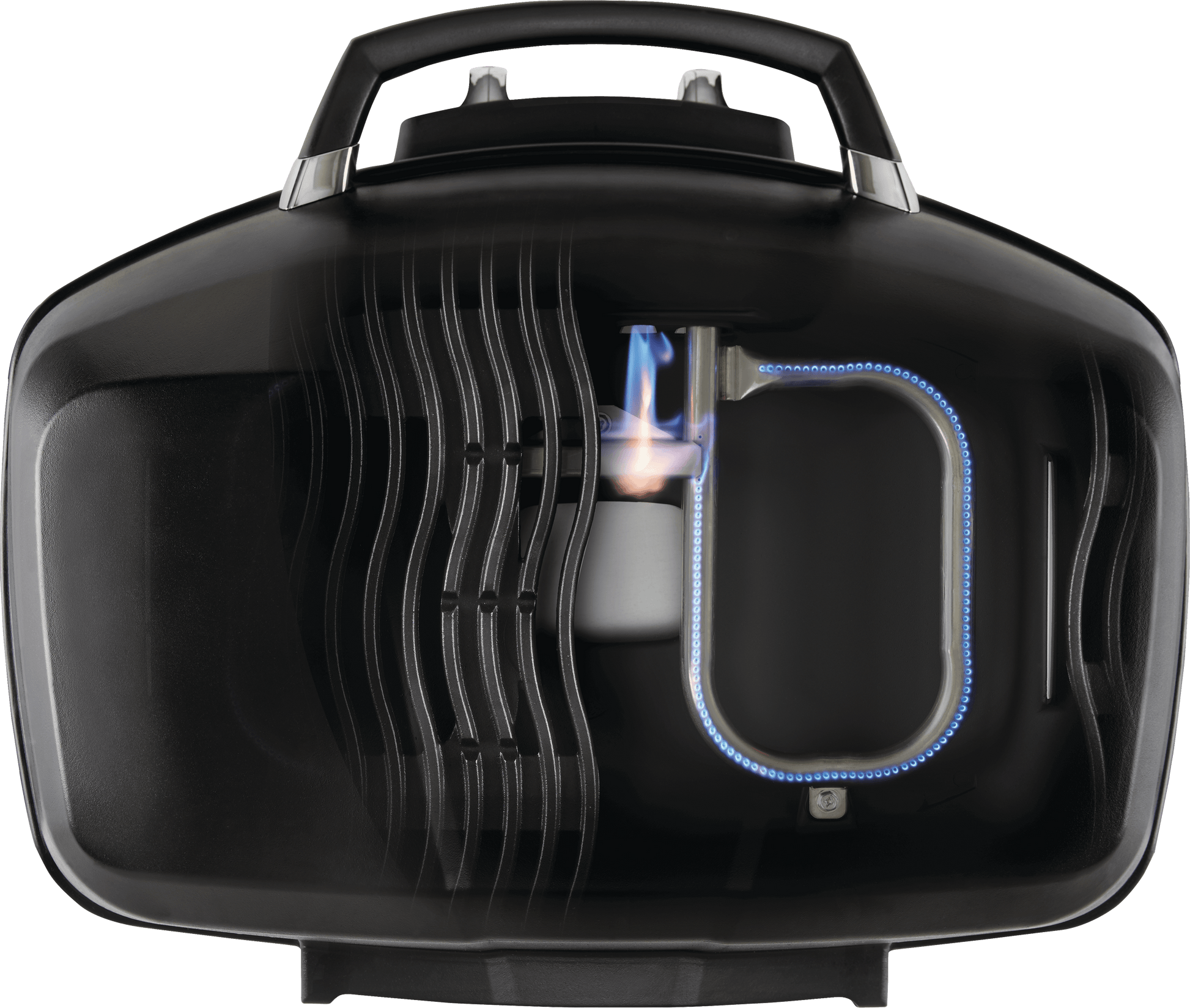 Napoleon's TravelQ™ PRO285 Portable Propane Gas Grill with scissor cart can grill up to 20 hamburgers at once on the 285 square inches of cooking area. The stylish all-black finish with chrome details will match any outdoor decor. The cast aluminum, high-topped lid design lets you take portable grilling to the gourmet level. Roast whole chickens or turkeys, pork and even prime rib; this little grill can do it. Using the dual stainless steel burners, you have precise control over the temperature, just like on Napoleon's full sized grills. High heat searing is a snap and you'll know it's a Napoleon with the iconic WAVE™ cooking grids for those distinctive sear marks. This grill has everything you need for perfect portable grilling anywhere, the nimble cart features all-terrain wheels, easy folding, setup, compact storage, and propane tank straps. This grill is perfect for any adventure. You can't beat this professional grill in a portable package.
