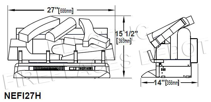 Fireplace: 27''W x 15 1/2''H x 14''D