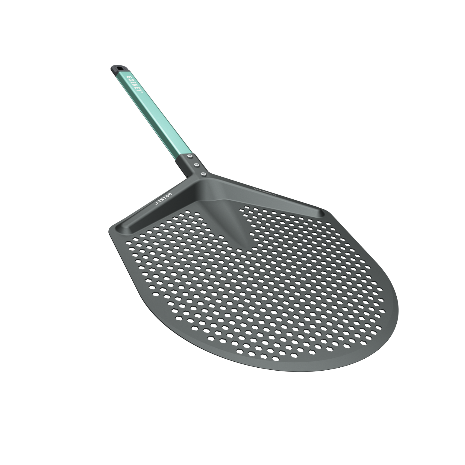 The Pro Placement Peel is designed to offer chefs a superior lightweight and optimized pizza experience, developed with and for the world’s best pizza makers. Designed with input from elite Gozney pizza chefs, the Pro is tuned specifically to the needs of pizza-makers who want to create their best pizza. A fully perforated blade allows maximum flour dispersion, completely minimizing the chance of excess flour accumulating on the bottom of the pizza and burning during your cook. The blade’s rounded shape helps you shape a perfect circle every time. The chiseled shape of the aluminum handle has angled sides for a confident grip and a curved underside so the peel slides freely through the hand when launching pizza. The fully aluminum construction provides lightweight comfort and overall responsiveness, creating a seamless extension of the chef’s arm – giving you the edge to reach your pizza-creating potential.