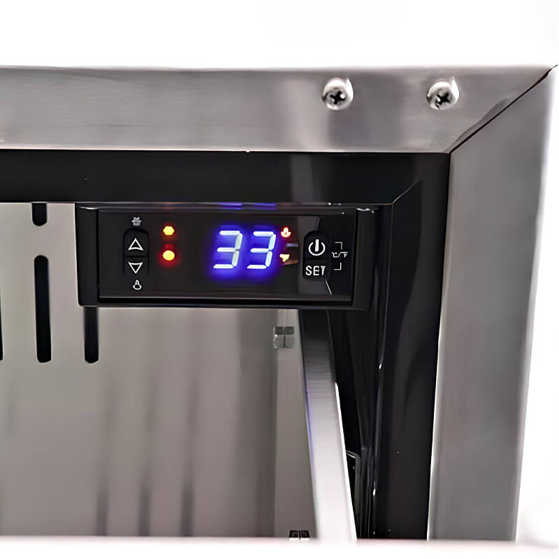 Featuring a digital thermostat allowing you precise temperature control, making sure your beverages stay cold and your salads and desserts remain at the perfect serving temperature. Easily keep the fridge temperature always perfect, knowing your ingredients and refreshments are at their best in your outdoor kitchen. The forced air internal fan is a workhorse, quickly and efficiently cooling your cold storage items, even when outdoor temperatures soar. Designed for the outdoors, this forced air system is designed to quickly cool your fridge even when you open the door frequently. It's perfect for rapidly ensuring marinated meat and delicate seafood reach the right temperature, preventing food safety concerns. The auto-defrost feature also preserves the efficiency of the compressor system, ensuring smooth operation throughout the seasons. Removing ice from the build-up keeps your cooling system safe and sound.