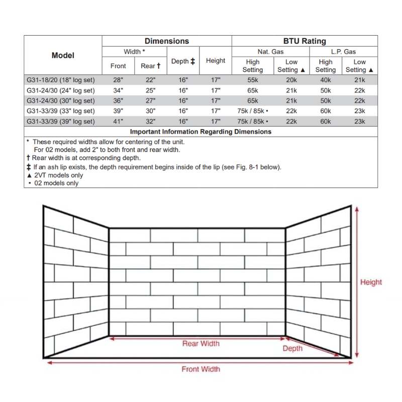The G31 features a 3-Tiered burner design that delivers a high, full bodied flame that uses fewer BTU's that other vented burners. It also has a compact footprint making it easier to fill your fireplace.