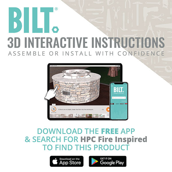 HPC has partnered with BILT to provide you with an easy-to-use app that walks you through the installation process, and assists in troubleshooting of your new fire pit. You can download this app by searching for "BILT" in your app store (available for Android and iOS).