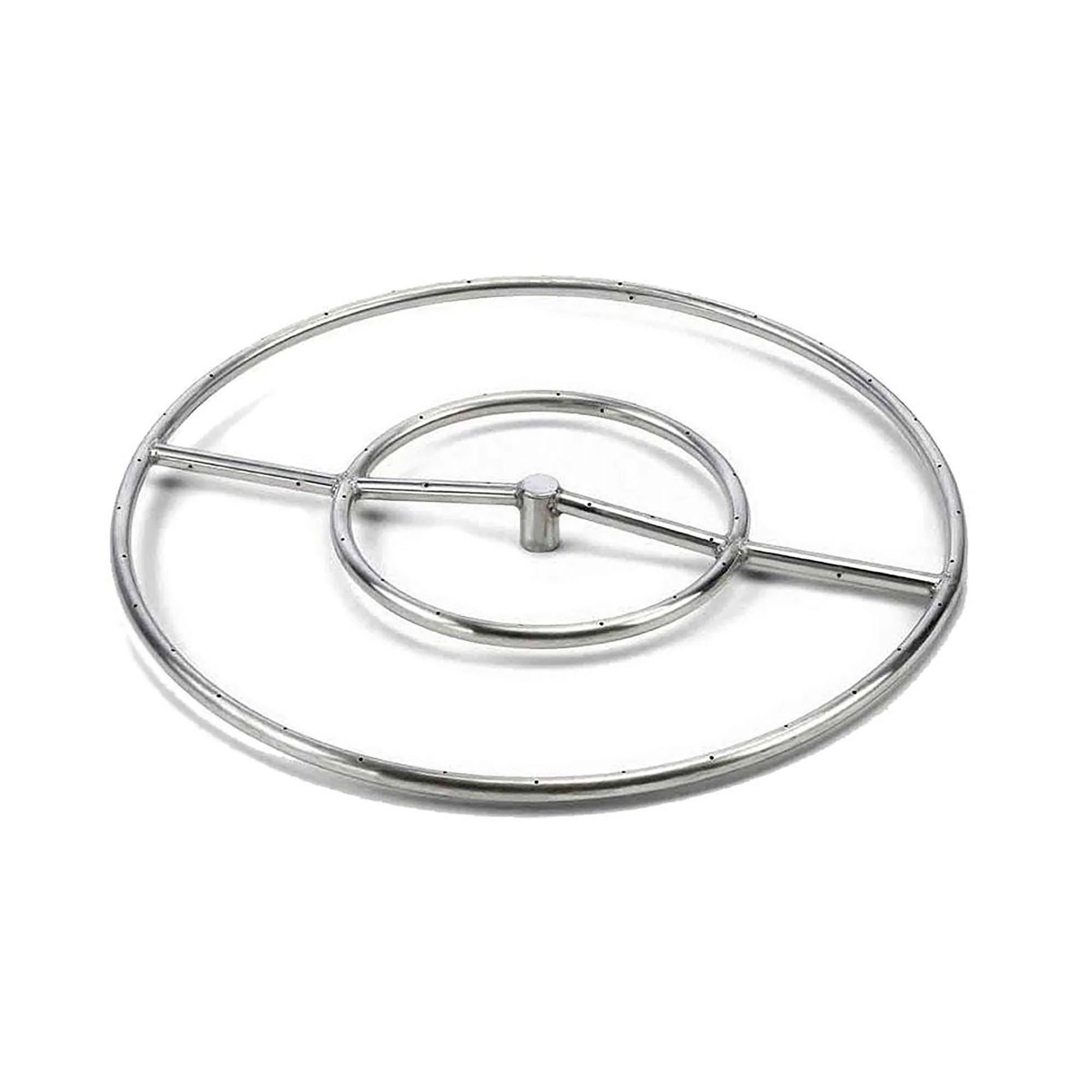 Enhance your outdoor gas fire pit with the Round Stainless Steel Fire Ring, a practical and visually striking addition to any fire feature. Designed for optimal performance, the staggered burner ports create an expansive flame pattern, maximizing gas flow for a fuller, more captivating fire display.