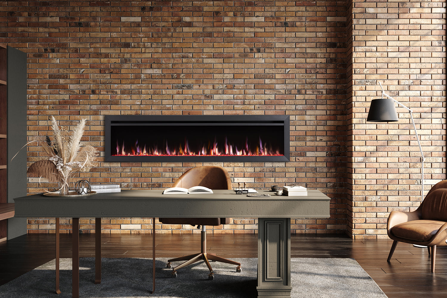 SimpliFire Allusion Slim Linear Electric Fireplace is really versatile. This Slim fireplace can be fully recessed in 2x4 walls or simply wall mounted with included hardware. No venting required, making Simplifire Allusion Slim perfect for any space including rentals. Efficient 5,000 BTU heating warms spaces up to 400 sq ft, with the option to enjoy flames year-round with or without heat. Connect via hardwire or standard 120V outlet.