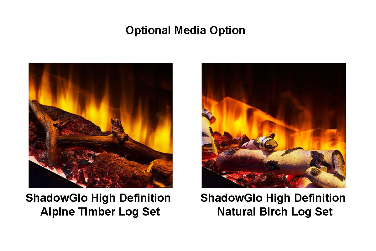 The SimpliFire Scion 43-inch Built-In Linear Electric Fireplace is an impressive unit, that will bring stunning modern appeal and functionality to any space. Feel the warmth and coziness of a fireplace without the need for gas lines or venting. Energy saving LED lights reflect and create life-like flame effects. Two media options come standard with the fireplace: Driftwood Logs and Clear Crystals media. Upgrade your Scion Electric Fireplace with an optional SimpliFire ShadowGlo High Definition Alpine Timber or optional ShadowGlo High Definition Natural Birch Log Set. Choose from four flame color options (blue, blue/orange, orange, orange/blue) and stunning 14 ember bed lighting color choices to create the ambiance that fits your mood best.