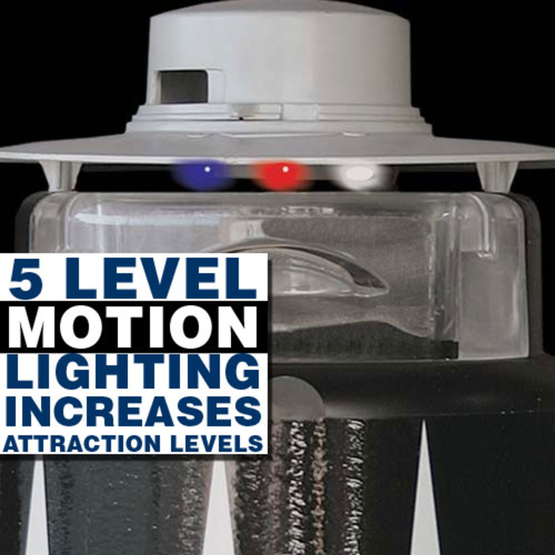 • LED Lighting Attractant: A distinctive 5-color motion lighting system, especially effective against the stubborn Asian Tiger mosquito.