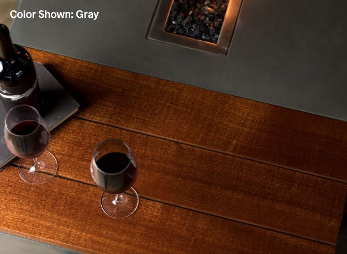 The Oasis Rectangle Fire Table by Slick Rock Concrete will add enhance and flair to any residential or commercial outdoor space. The Oasis Fire Table has state-of-the-art features such as a durable stainless steel burner, premium 15000 PSI concrete construction, and reinforced with micro-glass fibers for outstanding durability. The Oasis Rectangle Fire Table defines luxury in outdoor living. Proudly made in the USA and built to last for all your outdoor occasions. The Oasis Rectangle Fire Table has a maximum heat output of 65,000 BTUs and includes a stainless steel fire media pan..