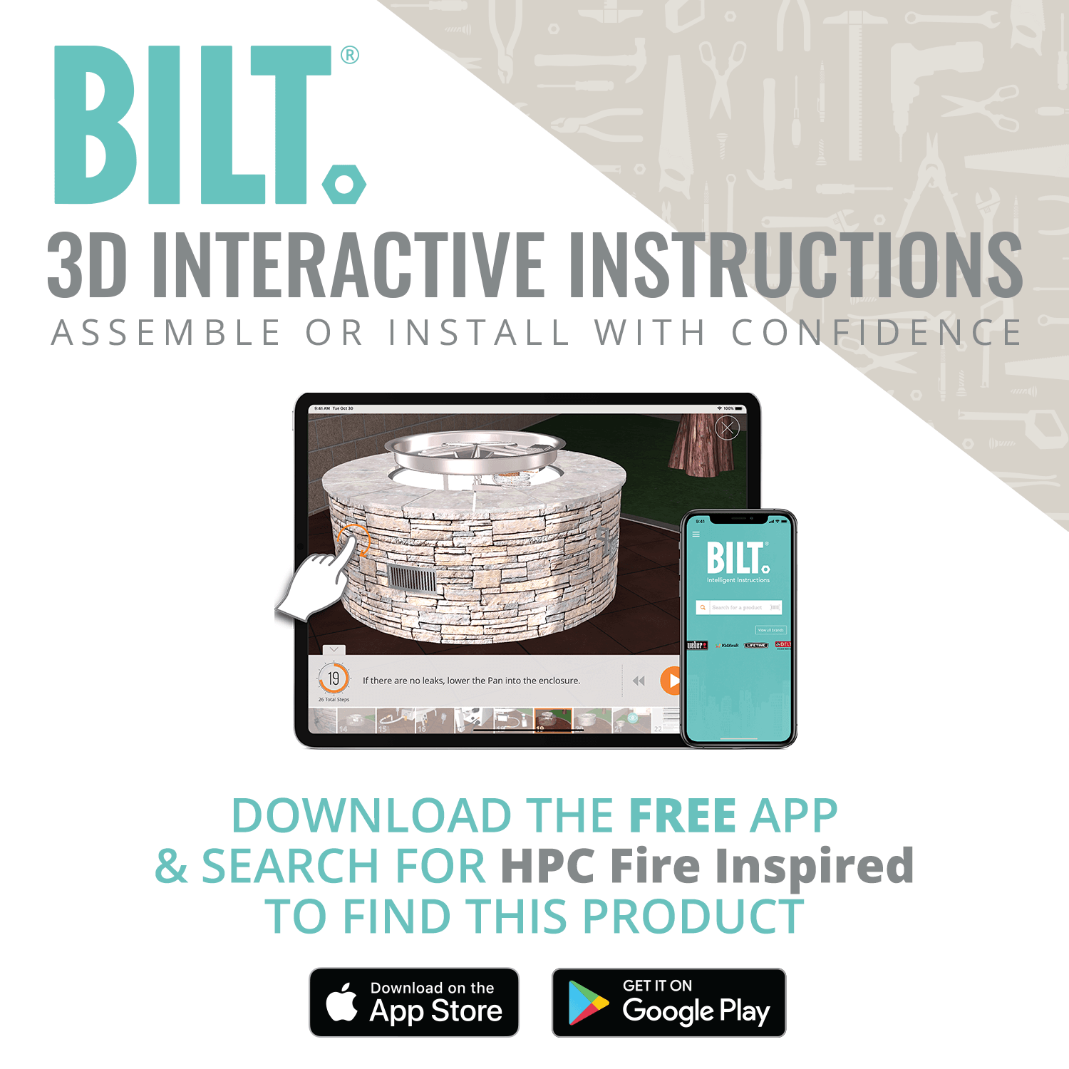 HPC has partnered with BILT to provide you with an easy-to-use app that walks you through the installation process, and assists in troubleshooting of your new fire pit. You can download this app by searching for "BILT" in your app store (available for Android and iOS).